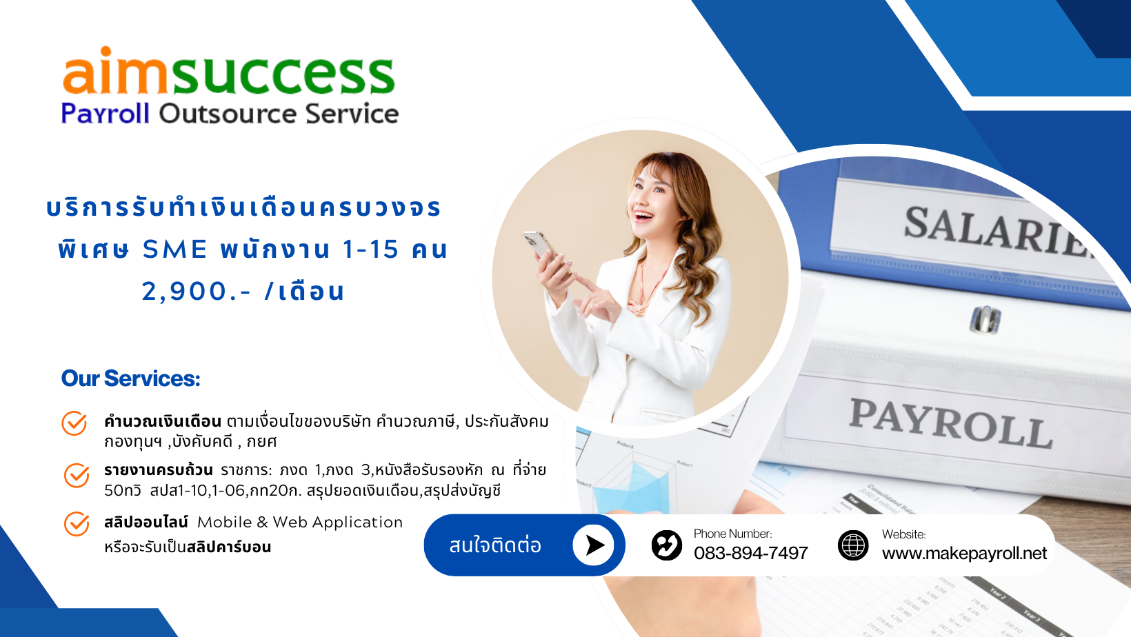 บริการรับทำเงินเดือนครบวงจร AIMSUCCESS ไม่ได้มาแทนที่ฝ่าย HR แต่เรามาเป็น ผู้ช่วยมืออาชีพ ที่ช่วยให้ทีม HR และเจ้าของกิจการ SME สามารถจัดการเงินเดือนได้อย่างถูกต้อง รวดเร็ว และมั่นใจใน Compliance ตามกฎหมายแรงงาน สแกน