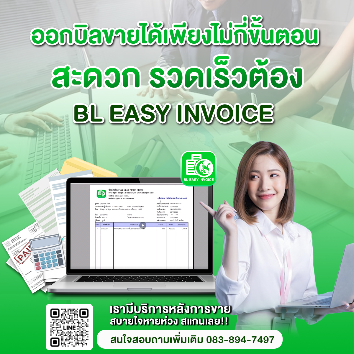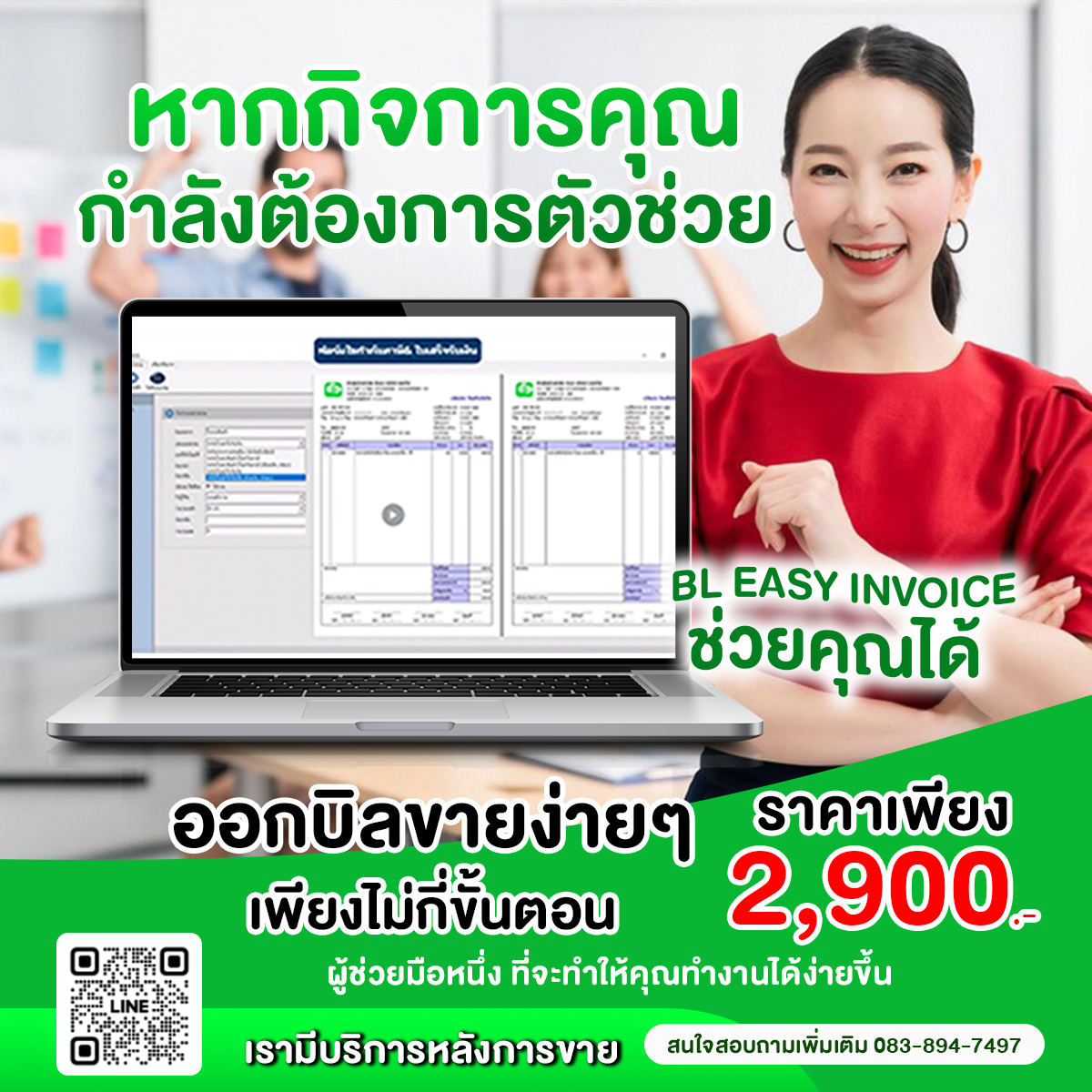 จำหน่ายโปรแกรมพิมพ์ใบเสร็จรับเงิน&ใบกำกับภาษี BL EASY INVIOCE มีลูกค้าให้ความไว้วางใจนำโปรแกรมไปให้ในธุระกิจมากกว่า 100 บริษํท หลากหลายประเภทธุกิจ และมีลูกค้าใช้เพื่อขึ้นเรื่อยๆ เนื่องจากเป็นโปรแกรมที่รันบน Windows ใช้งานง่าย เพียงไม่กี่ขั้นตอนก็พิมพ์ใบเสร็จและใบกำกับภาษีได้แล้ว