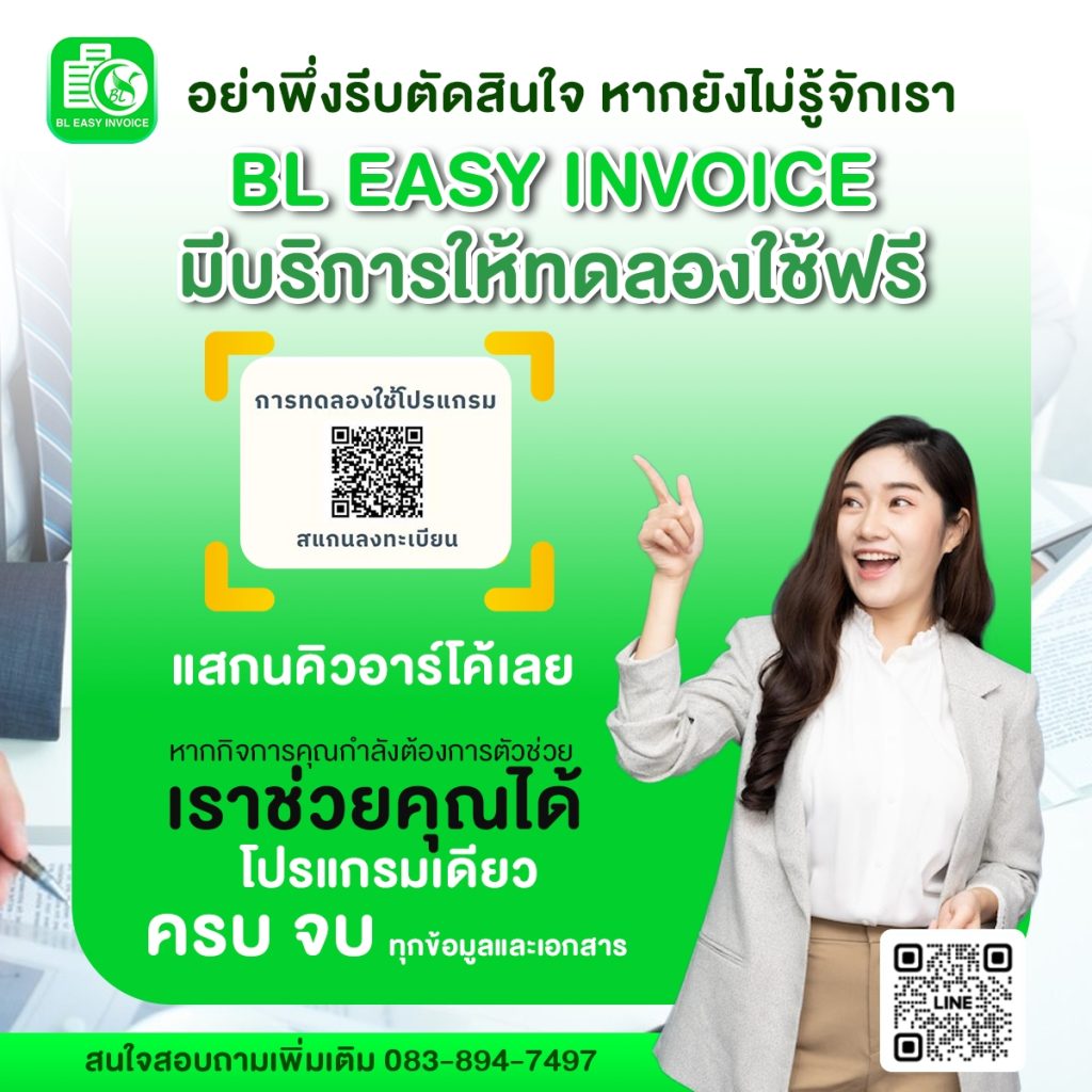 “โปรแกรมออกบิล BL Easy Invoice ใช้งานง่าย รองรับ SME ไทย ออกใบกำกับภาษีและเอกสารทางการเงินได้อย่างถูกต้อง รวดเร็ว และปลอดภัย”